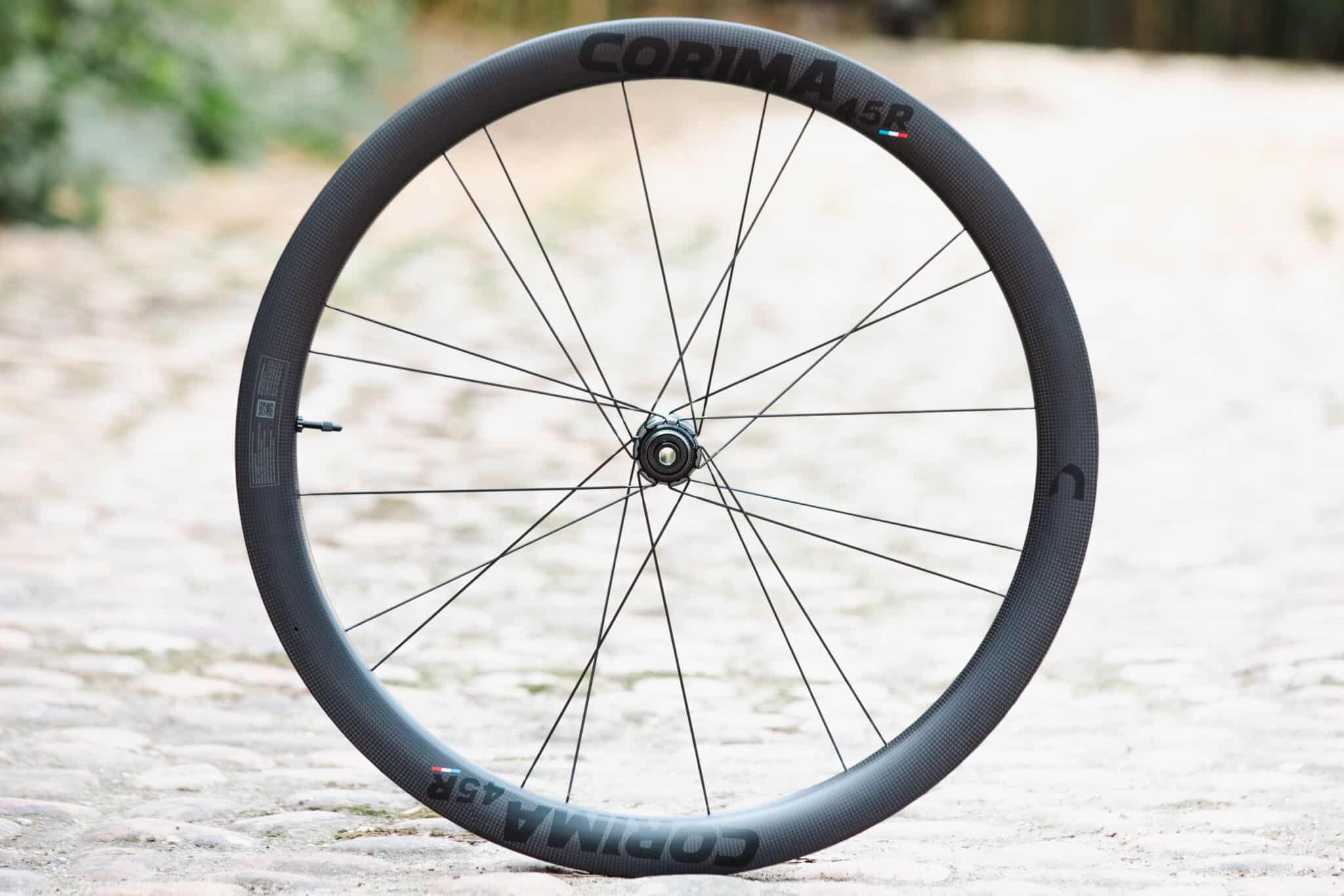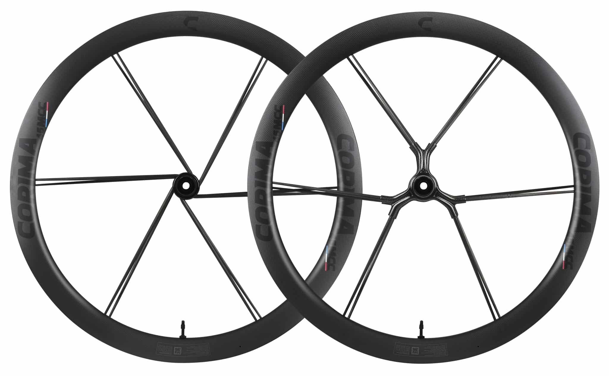 Les nouvelles Corima 45 MCC représentent tout le savoir-faire de Corima. Leur nouvelle jante de 45 mm de profil pour une largeur externe de 28mm (22 interne) associée aux 12 rayons carbone collés permettent d’afficher une masse de seulement 1395 grammes soit 90 grammes de moins que les précédentes 47MCC EVO. Côté tarif, il est aussi en baisse avec une paire 45 MCC affichée à 3290 euros.